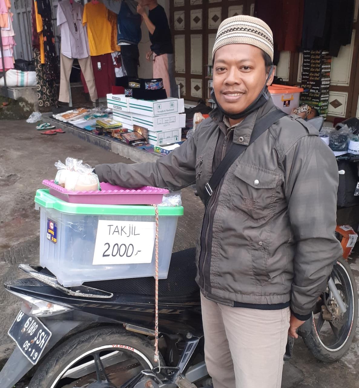 Ali biasa berangkat dari rumah pukul 14.30 WIB dan pulang pukul 17.30 WIB. Dia membawa 60 plastik takjil Ramadan.